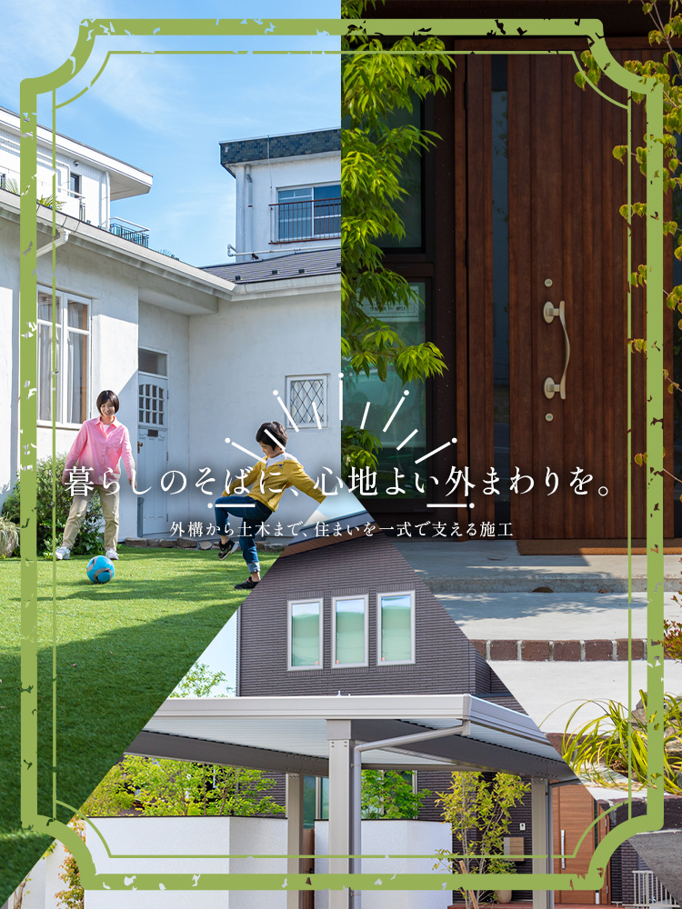 全体を見通した施工で、使いやすさと耐久性を考えたご提案が可能です。新築・リフォーム問わず、住まいの外まわりをトータルでサポートします。